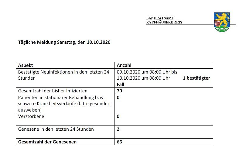 Es gibt einen weiteren Zuwachs, aber sind mehr Personen genesen. Hier die tägliche Corona-Meldung aus dem Landratsamt Kyffhäuserkreis...