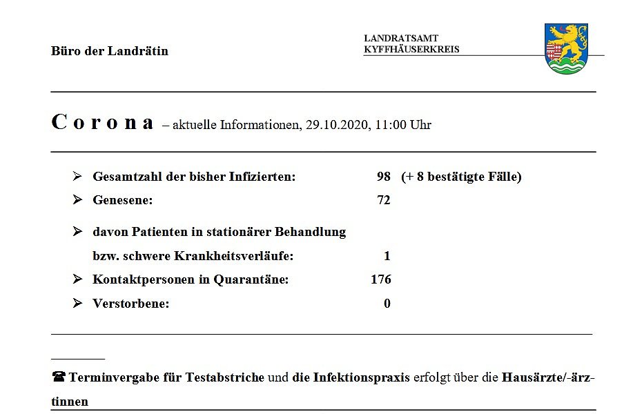 Noch ist der Indexwert nicht dramatisch. Hier die tägliche Corona-Meldung aus dem Landratsamt Kyffhäuserkreis...