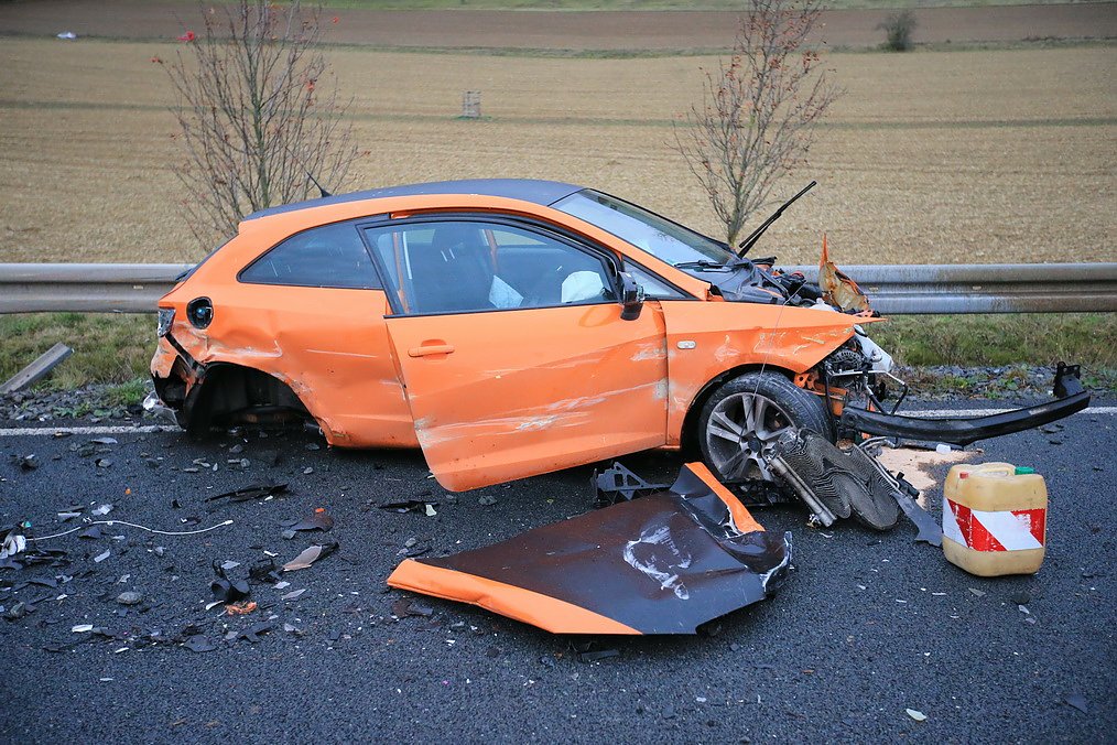 Hierbei touchierte er einen Kleintransporter und einen Peugeot, bevor die Schutzplanke die Fahrt des Seats endgültig stoppte. Der 18-Jährige, die beiden Insassen im Transporter, 24 und 21 Jahre alt, sowie die 56-jährige Fahrerin im Peugeot hatten Glück. Sie erlitten neben einem Schock nur leichte Verletzungen. Die Fahrzeuge mussten, erheblich beschädigt, abgeschleppt werden. Ein weiteres Fahrzeug, das nicht rechtzeitig ausweichen konnte, durchfuhr das Splitterfeld auf der Straße. Hier sind die Beschädigungen noch unklar. An der Unfallstelle kam es zu massiven Verkehrsbehinderungen, obwohl die Verkehrsteilnehmer langsam an der Unfallstelle vorbeigeführt worden sind. Während der Bergung der Unfallfahrzeuge musste die Unfallstelle kurzzeitig komplett gesperrt werden.