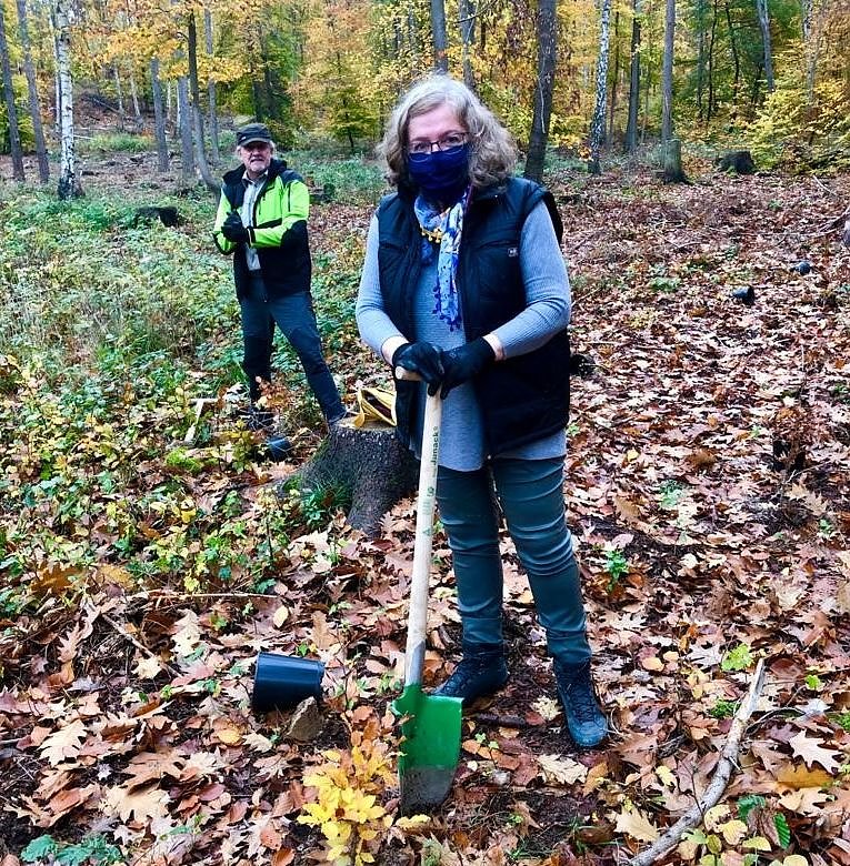 Dorothea Marx (MdL) und Revierförster Ralf Hubert beim Pflanzen der Rotbuchen.