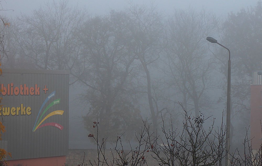 Bei -1°C gab es die ersten leichten Nebelfelder, wie hier in Sondershausen. Also früh lieber mal etwas früher aufstehen. Und machen Sie rechtzeitig Termine für den Reifenwechsel klar, denn eine Erfahrung besagt, ab Buß- und Bettag im November (18.11.) sollte man seine Winterreifen auflegen.