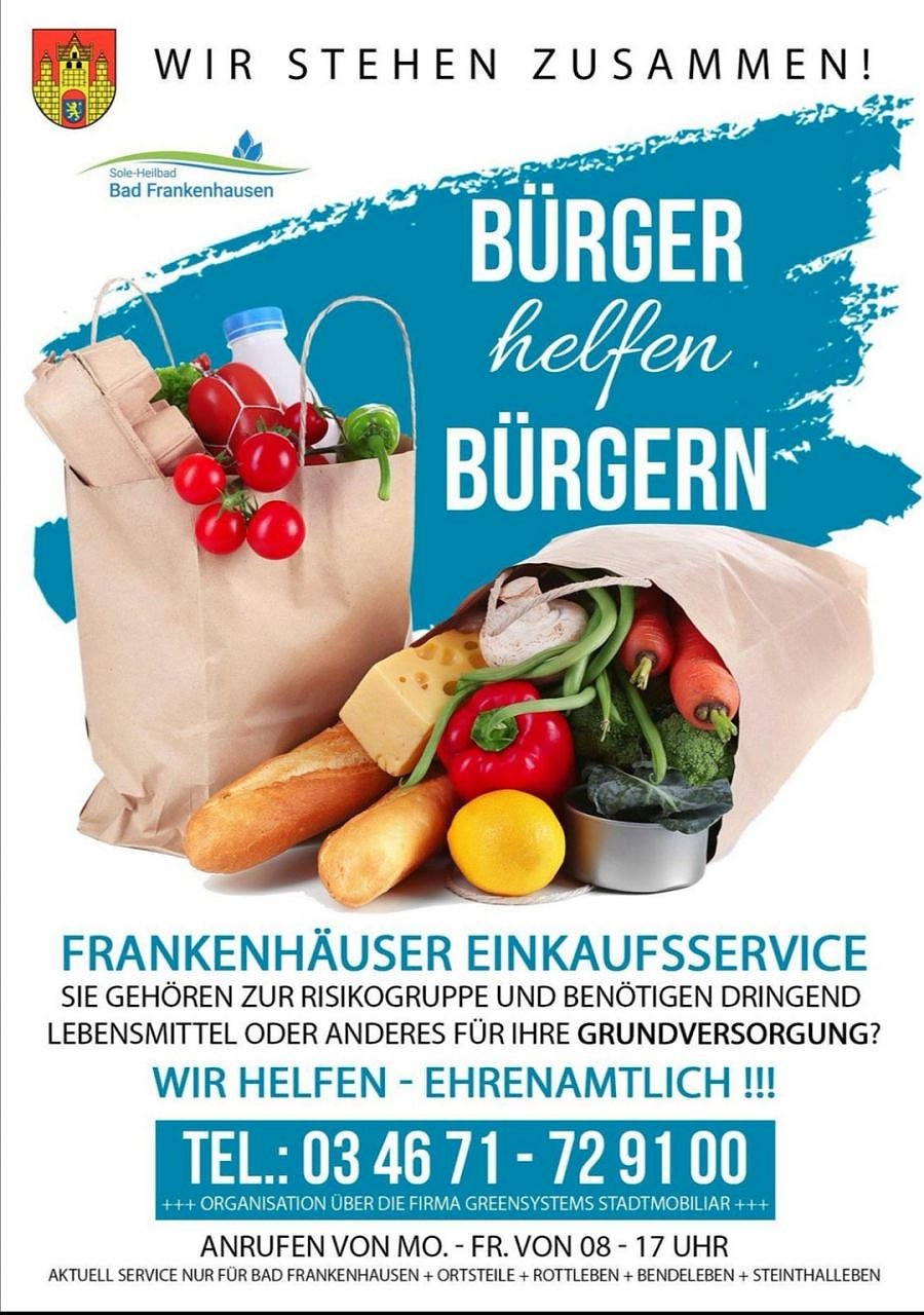 Unsere Einkaufs-Hilfsaktion für unsere Bürgerinnen und Bürger der Kernstadt Bad Frankenhausen, sowie der dazugehörigen Ortsteile und der Orte Rottleben, Steinthaleben und Bendeleben sind wieder für Sie unterwegs. Dazu diese Meldung aus Bad Frankenhausen...