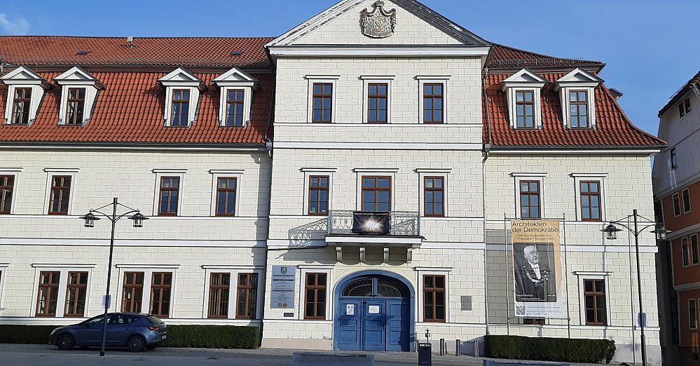 Mit einem großen Banner am ehemaligen Prinzenpalais, dem jetzigen Sitz des Landratsamtes des Kyffhäuserkreis wurde bereits schon heute die Ausstellung eröffnet.