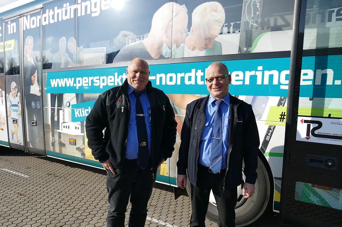 Der Bus mit seiner auffälligen und bunten Gestaltung fällt sofort auf, wenn man ihm auf der Straße begegnet. Für uns ist es deshalb der ideale Werbeträger um die vielen Vorzüge unserer Region darzustellen., so Lisa Schäfer, Öffentlichkeitsarbeit im Regionalmanagement Nordthüringen. Das Team des Regionalmanagement Nordthüringen und die Regionalbus GmbH freuen sich über die zahlreichen Fahrgäste, die auf der landesbedeutsamen Buslinie unterwegs sind. Wer über einen Perspektivwechsel beim Thema Mobilität nachdenkt und auch mal einsteigen möchte, ist eingeladen dies in den kommenden 12 Monaten zu tun - so lange wird der Bus im Design des Regionalmanagements Nordthüringen in der Region unterwegs sein.
