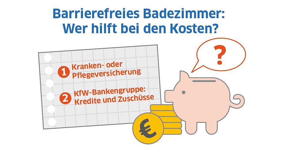 Antirutschmatte, Duschstuhl oder Haltegriff sind sehr günstig in der Anschaffung und bedürfen keiner aufwendigen Installation. Bei größeren Investitionen stehen verschiedene Möglichkeiten der finanziellen Unterstützung zu Verfügung. Beispielsweise vergibt die KfW Bankengruppe zinsgünstige Kredite und Zuschüsse für den barrierefreien Umbau des Badezimmers.