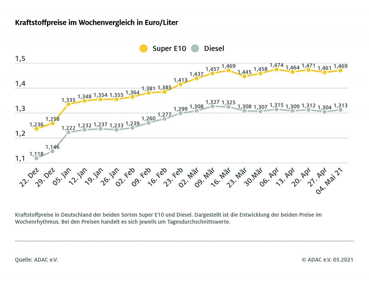Auch der Preis für Dieselkraftstoff ist etwas gestiegen. Erliegt im Schnitt bei 1,313 Euro, das ist ein Plus von 0,9 Cent. Die Ursache für den Anstieg der Kraftstoffpreise liegt am ebenfalls verteuerten Rohöl. Ein Barrel der Nordsee-Ölsorte Brent kostet derzeit gut 69 US-Dollar. Damit hat sich der Ölpreis seit der Vorwoche um etwa drei Dollar verteuert.