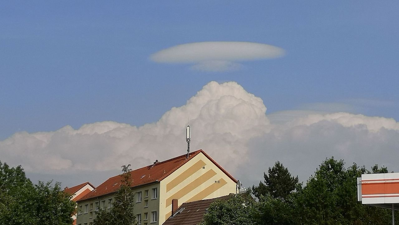 "Sehen Sie das auch, dieses scheibenartige Wolkengebilde noch über der großen Wolkenformation?