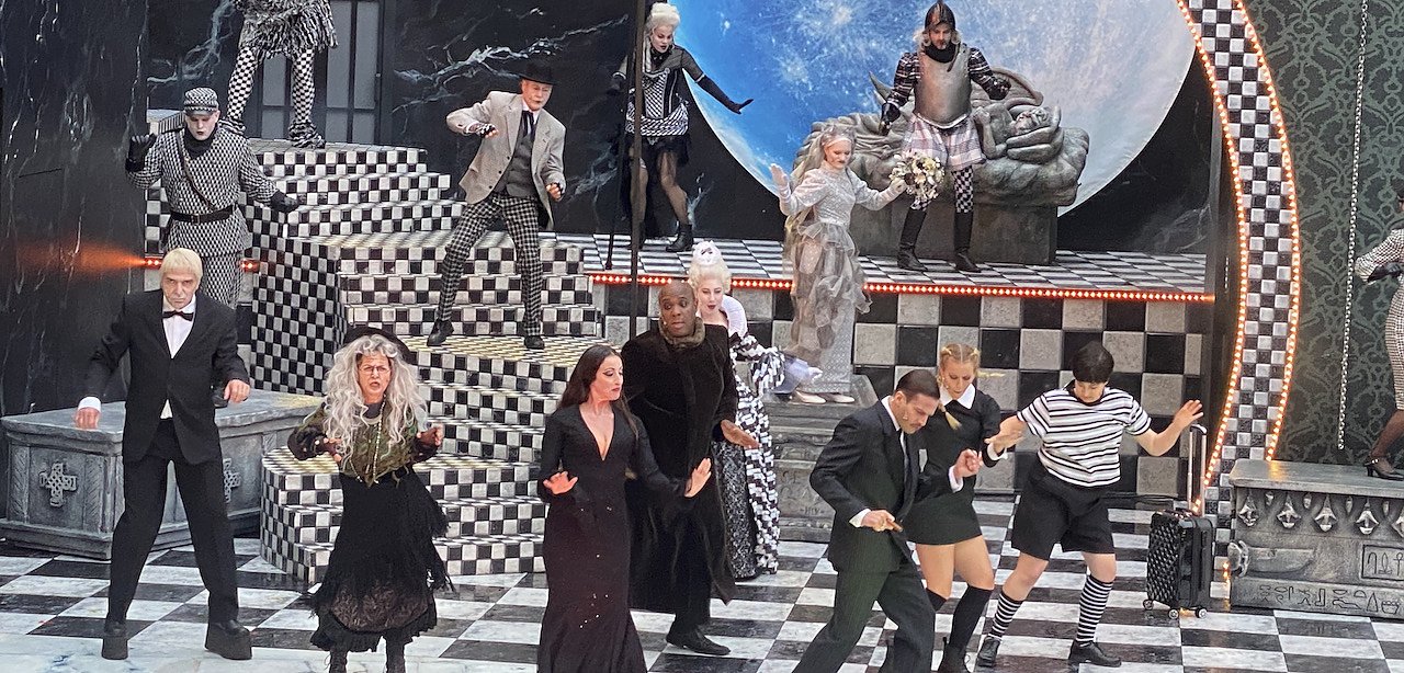 Bei eher widrigen Witterungsbedingungen, die sich dem morbiden Grusel und vor allem der Grabeskälte der Addams Family anpassten, absolvierten die Sänger und Musiker ihre erste Aufführung nach dem Lockdown im November vergangenen Jahres. In einer schwungvollen Inszenierung von Ivan Alboresi, die vor allem im zweiten Teil ordentlich Fahrt aufnahm, begeisterten Solisten, Chorsänger und Musiker ein tiefgekühltes Publikum, das genau so tapfer wie das durchnässte Ensemble den einen oder anderen Regenguss ertrug.