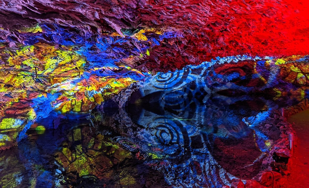 Die Barbarossahöhle präsentiert sich als Lichtkunstwerk