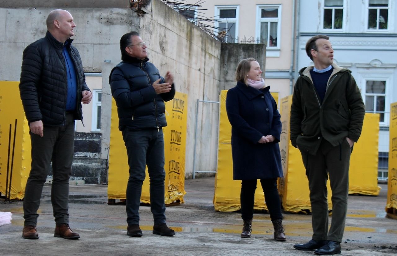 v.l. Bürgermeister Steffen Grimm, Investor Stefan Hofmann; Sabrina Kilian und Sebastian Weber (Künftige Mieter des Pflegeunternehmens aiutanda) (Foto: Eva Maria Wiegand)