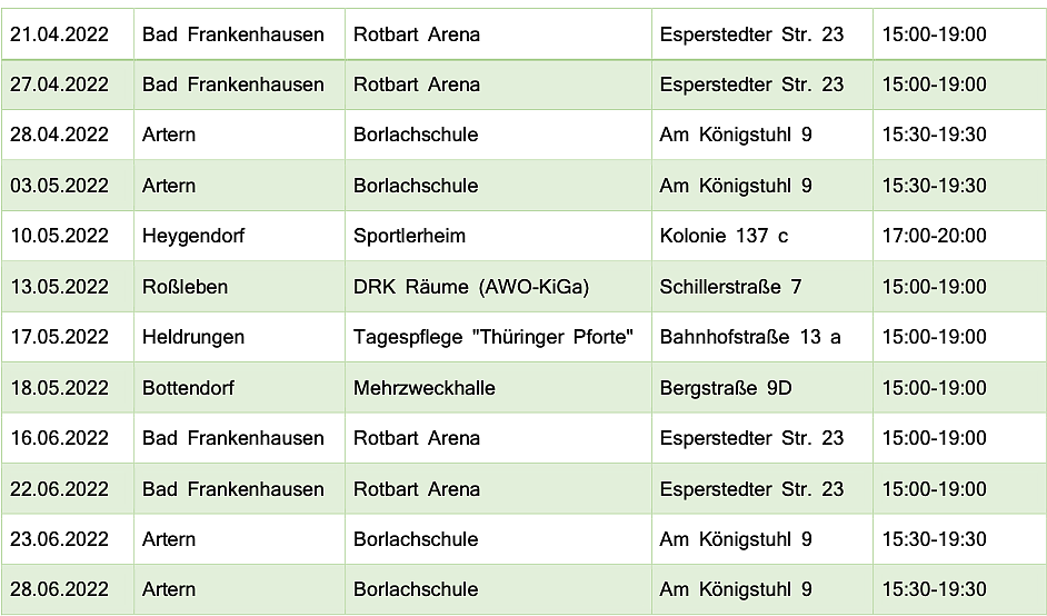 Im Anhang finden Sie eine Übersicht der DRK-Blutspendetermine im Kyffhäuserkreis für die Monate April bis Juni...
