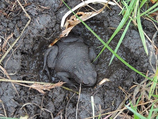 Alle heimischen Amphibien benötigen zudem Feuchtigkeit, um sich fortpflanzen zu können. Damit sich ihre gallertigen Eier entwickeln können, müssen sie in einer feuchten Umgebung in der Regel mindestens in einem Kleinstgewässer abgelegt werden. Sandra Honigs: Auf Amphibien warten viele Gefahren. Zahlreiche Gewässer werden bereits von hungrigen Fischen bewohnt, die nur darauf warten, sich über die munteren Amphibienlarven her zu machen. Und hat ein Frosch ein schmuckes temporäres Gewässer gefunden und besetzt, trocknet dieses möglicherweise bei der nächsten Hitzewelle gleich wieder aus. Da können wir Menschen nur mit Gießkanne und Gartenschlauch Entwicklungshilfe leisten.