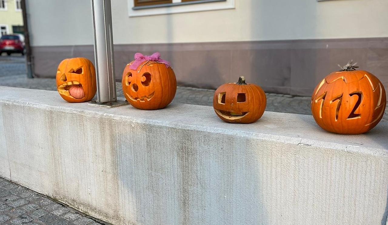 Noch bis zum 28. Oktober haben alle großen und kleinen Halloween-Fans die Möglichkeit, ihren geschnitzten Kürbis im Bürgerbüro am Markt 7 abzugeben. Dort werden die Kürbiskunstwerke von den Mitarbeiterinnen in einer Liste registriert und anschließend auf den Stufen vor dem Rathaus platziert.