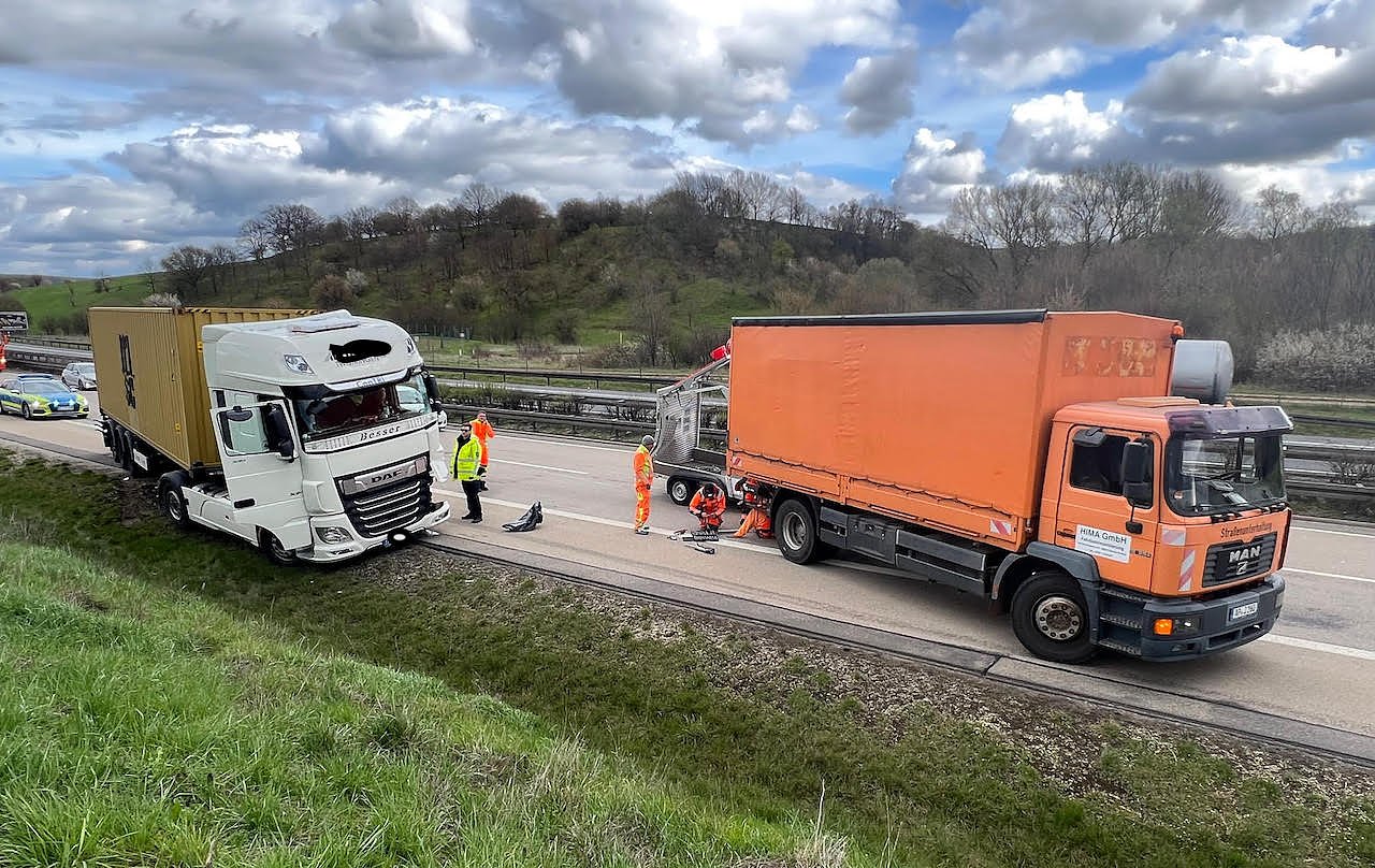 Die Mitarbeiter einer Firma, die mit den Straßenmarkierungsarbeiten in diesem Bereich der Autobahn betraut war, konnten sich rechtzeitig in Sicherheit bringen, so dass niemand verletzt wurde.