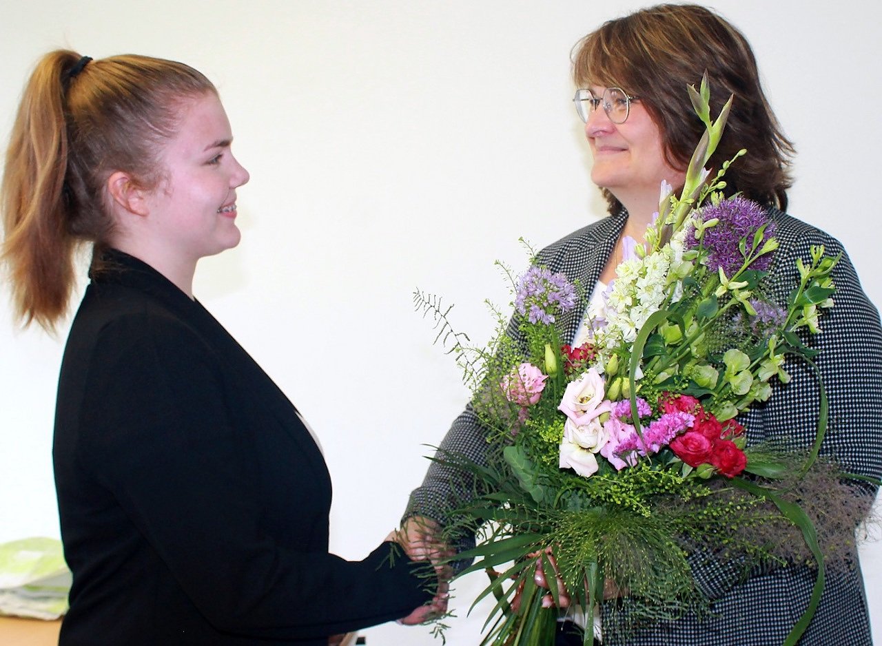 Geschäftsführerin der Stadtwerke Sondershausen Anja Lemke begrüßt die Auszubildene Judy Rasch (Foto: Stadtwerke Sondershausen)