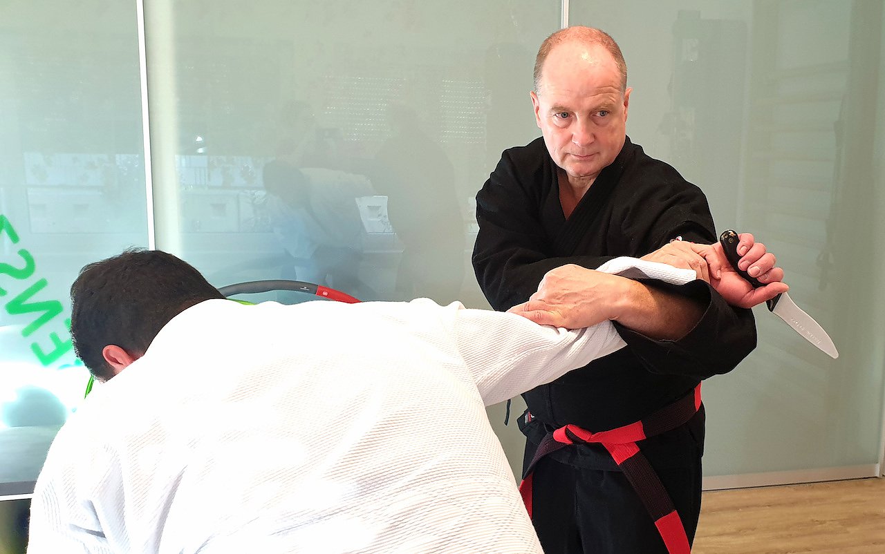 Foto: l. n. r. Markus Retzek und Joachim Retzek (Variante einer Messerabwehr) (Foto: Joachim Retzek)