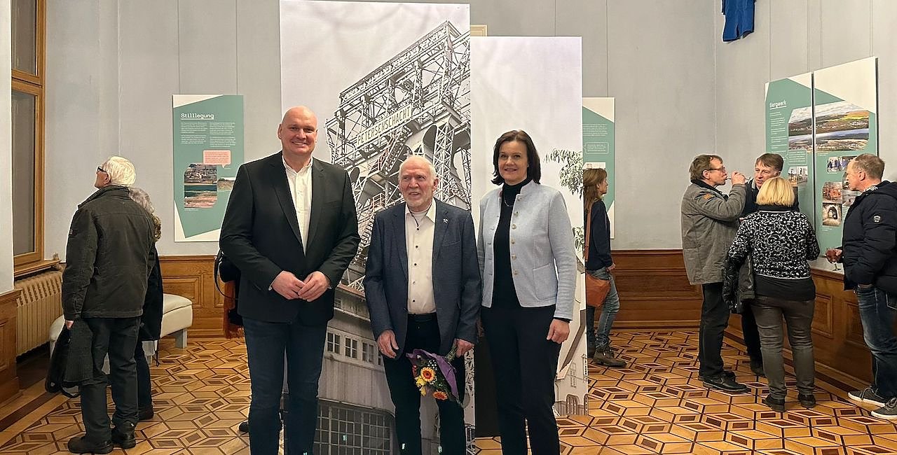 Zur Eröffnung der Sonderausstellung kamen über 150 Besucher, darunter auch Bürgermeister Steffen Grimm (li.), Landrätin Antje Hochwind-Schneider (re.) und Günter Otto (Mitte), Vorsitzender des Bergmannsvereins Glückauf Sondershausen. (Foto: Janine Skara)