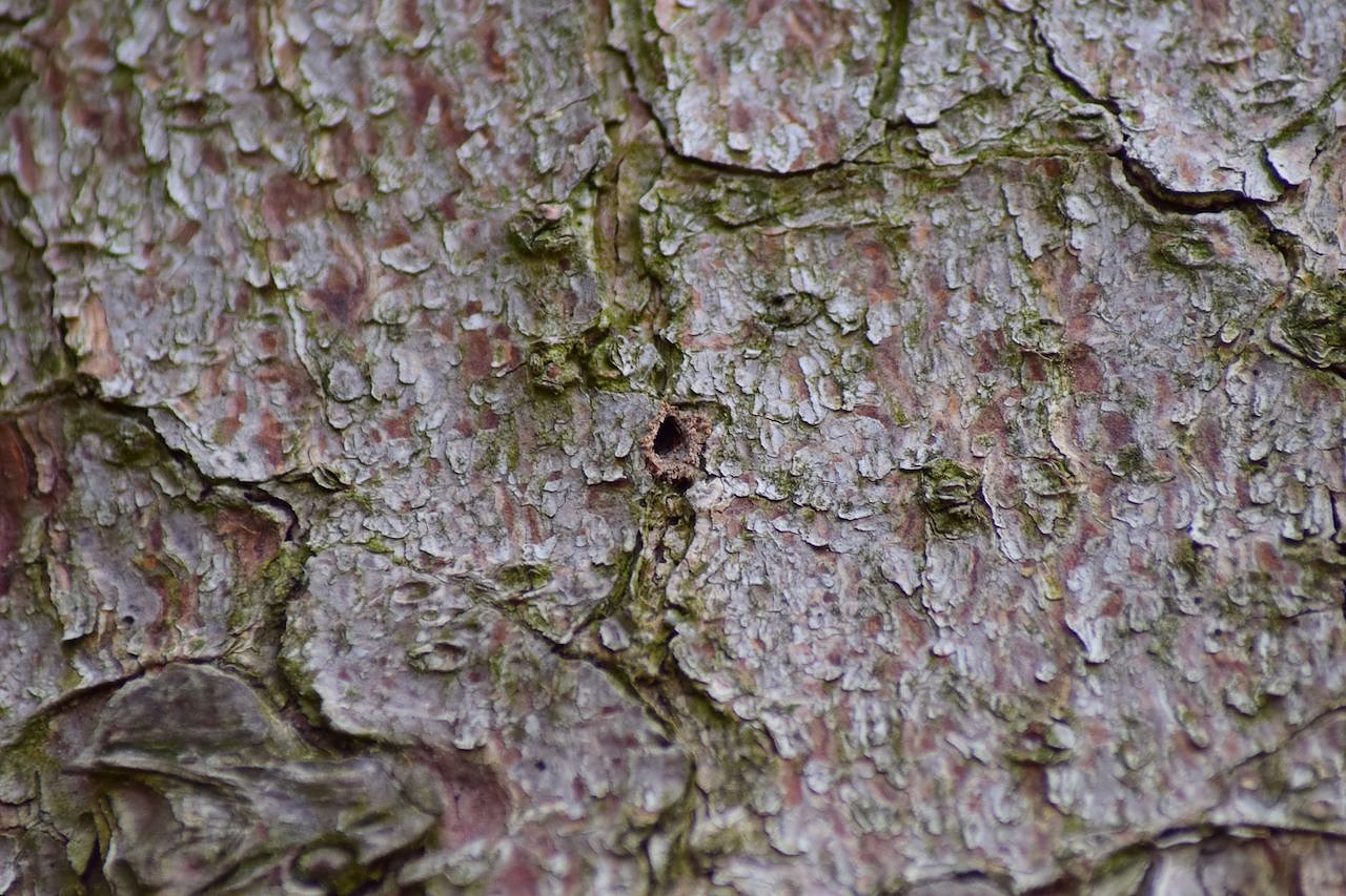 Ein wenige Millimeter großes Buchdrucker-Einbohrloch an einem Fichtenstamm (Foto: ThüringenForst AöR)