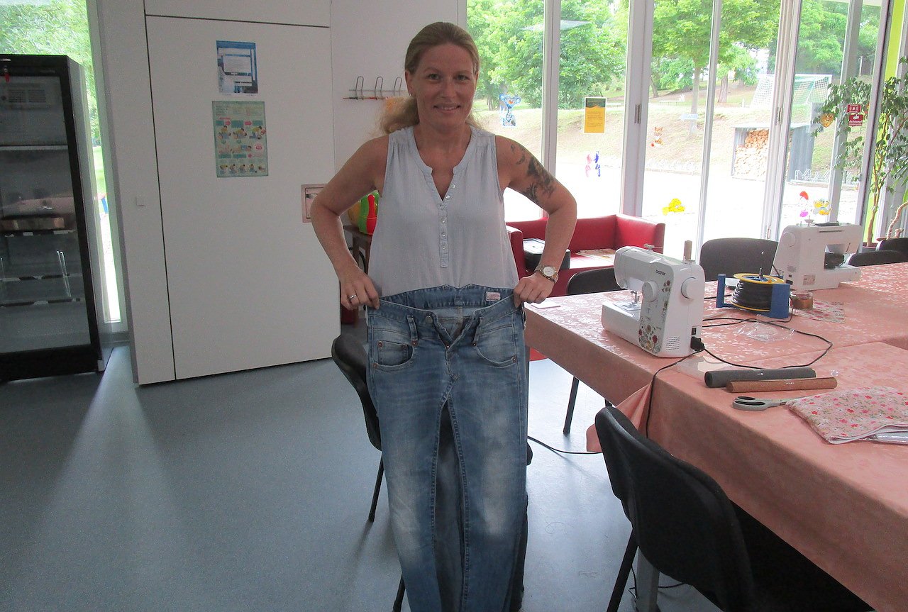 Mit Scheren, Nähmaschinen und Nähutensilien bewaffnet, machten sich die Teilnehmerinnen und Teilnehmer dann ans Werk. Die Jeanshosen wurden zugeschnitten, umgenäht und mit besonderen Details verziert. Es war beeindruckend zu sehen, wie aus einem scheinbar unbrauchbaren Kleidungsstück ein neues, trendiges Kleidungsstück entstand.