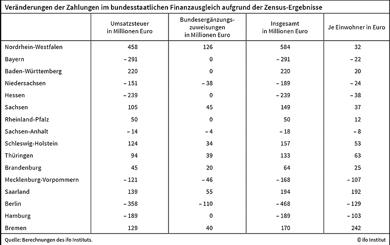 Veränderte Zahlungen für die Länder durch Zensus