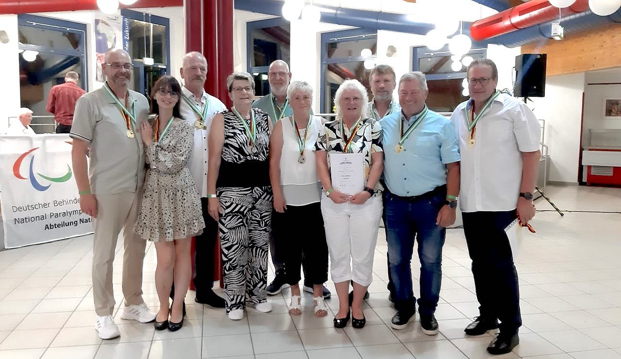In der schön hergerichteten Festhalle von Nordwalde wurde die Siegerehrung durchgeführt. Zuvor gab es Festreden vom Landrat des Landkreises Steinfurt und weiteren Gästen, da die BSG-Nordwalde gleichzeitig ihr 60. Jubiläum feierte. Danach wurden noch Rollstuhltänze von 2 Pärchen dargeboten, welche für viel Stimmung im Saal sorgten. Nachdem sich alle Teilnehmer bei einem liebevoll hergerichteten Buffet von den Strapazen der letzten 2 Wettkampftage stärkten, begann der Bundesbeauftragte, Teddy Östreicher, mit der Siegerehrung.