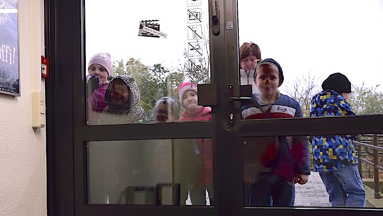 Kinder drücken sich am Kinoeingang kurz vor Einlass die Nasen platt (Foto: Fred Böhme / Archiv Panorama Museum)