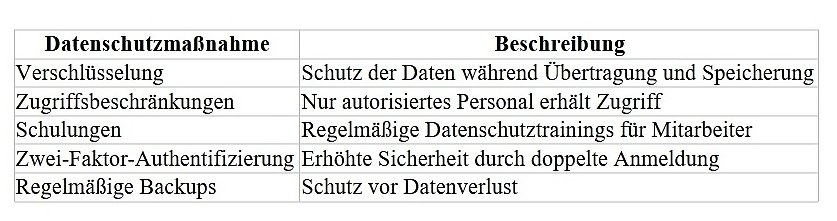 • Zugriffsrechte: Nur autorisiertes Fachpersonal darf auf die Daten zugreifen.