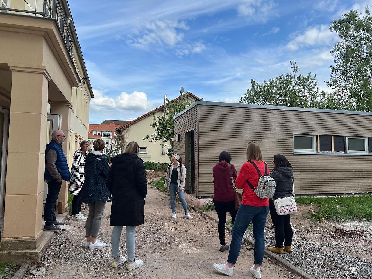 Gemeinsam mit Kita-Leiterin Petra Zollner, Fachgebietsleiterin für Kitas, Jacqueline Lange und Thomas Kühn, Fachgebietsleiter Hochbau/Gebäude- u. Energiemanagement der Stadtverwaltung, empfing sie die Elternvertreter der Einrichtung und führte sie über die Baustelle. Im September 2025 soll die Kita Käthe Kollwitz wieder für 90 Kinder, davon 26 Kinder im Alter von 1 bis 3 Jahren, auf 2 Etagen eröffnen.