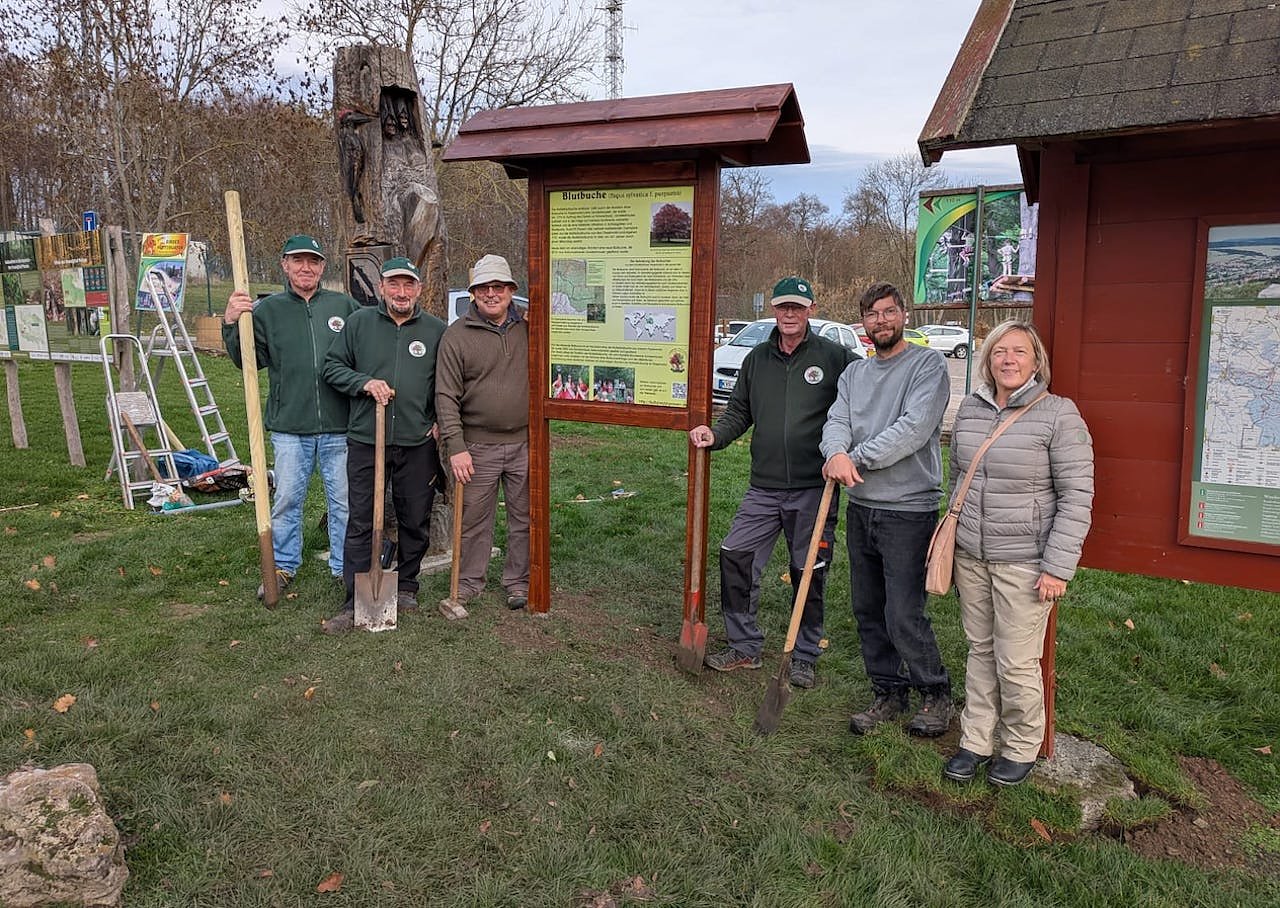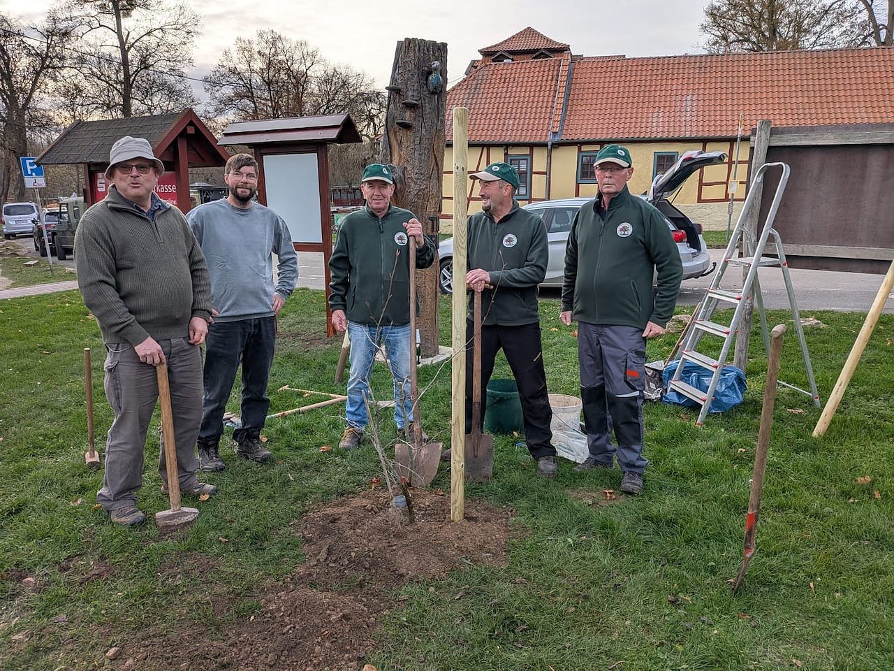 Wir danken der FAU Sondershausen, besonders Alexander Schulz, für die Anfertigung und das Aufstellen des Schautafelständers, sowie dem Forstamtsleiter Herrn Klüßendorf für den Transport und die wertvollen Tipps zur richtigen Pflanzung.