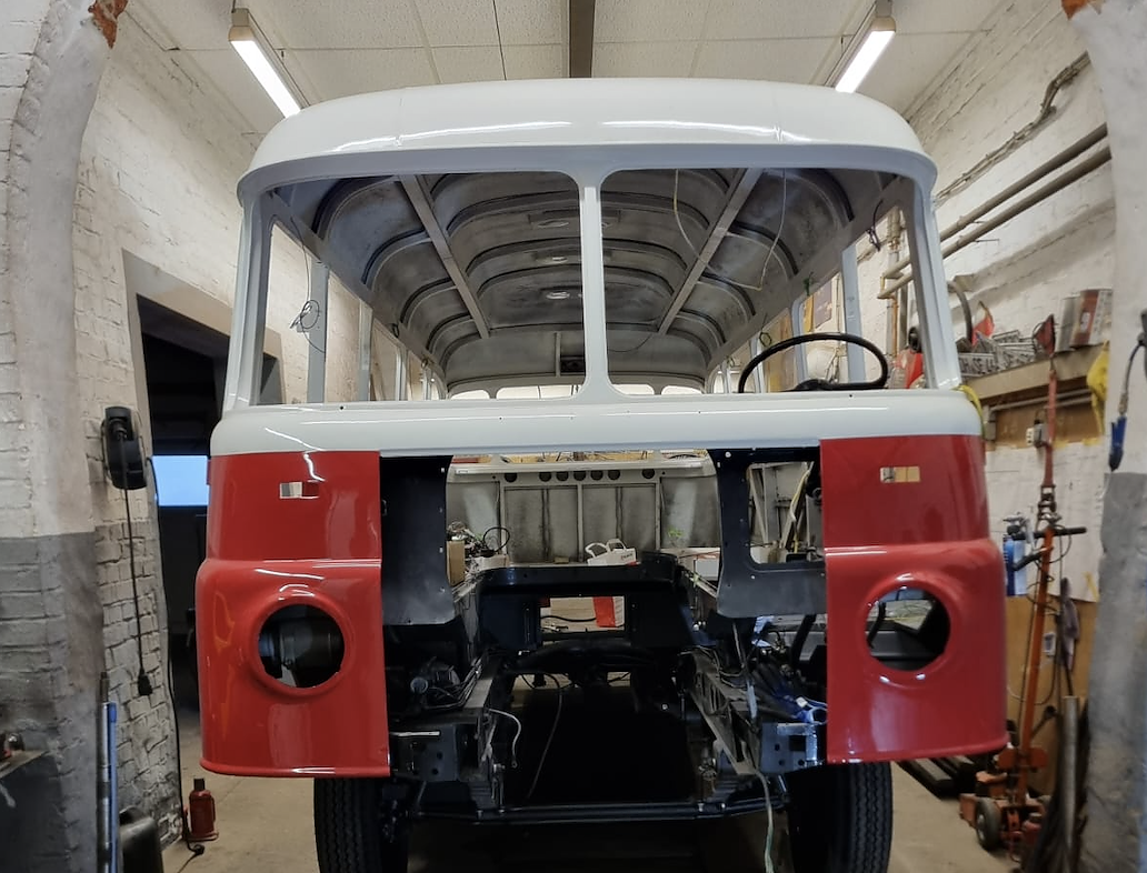 Der Schwerpunkt aber lag auch in diesem Jahr bei der Restaurierung historischer Fahrzeuge. Spediteur Steffen Eckhardt aus Sollstedt verleiht einem Robur Lo 3000 Fr2-M/B 21 Bj.1980, hergestellt in den ehemaligen VEB Robur Werken Zittau eine sprichwörtliche Frischzellenkur Der optisch auch sehr schöne kleine Reisebus, welcher auch der Spielwarenindustrie der DDR häufig als Vorlage diente, soll im kommenden Jahr wieder auf den Straßen rollen.