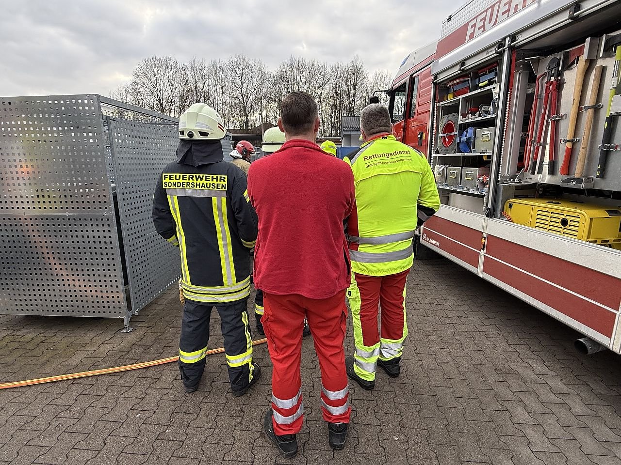 Die Rettungsleitstelle alarmierte daraufhin die Feuerwehren in Sondershausen. Nach ersten Informationen des Einsatzleiters ist ein MDE-Gerät eines Mitarbeiters in die Presse gefallen.