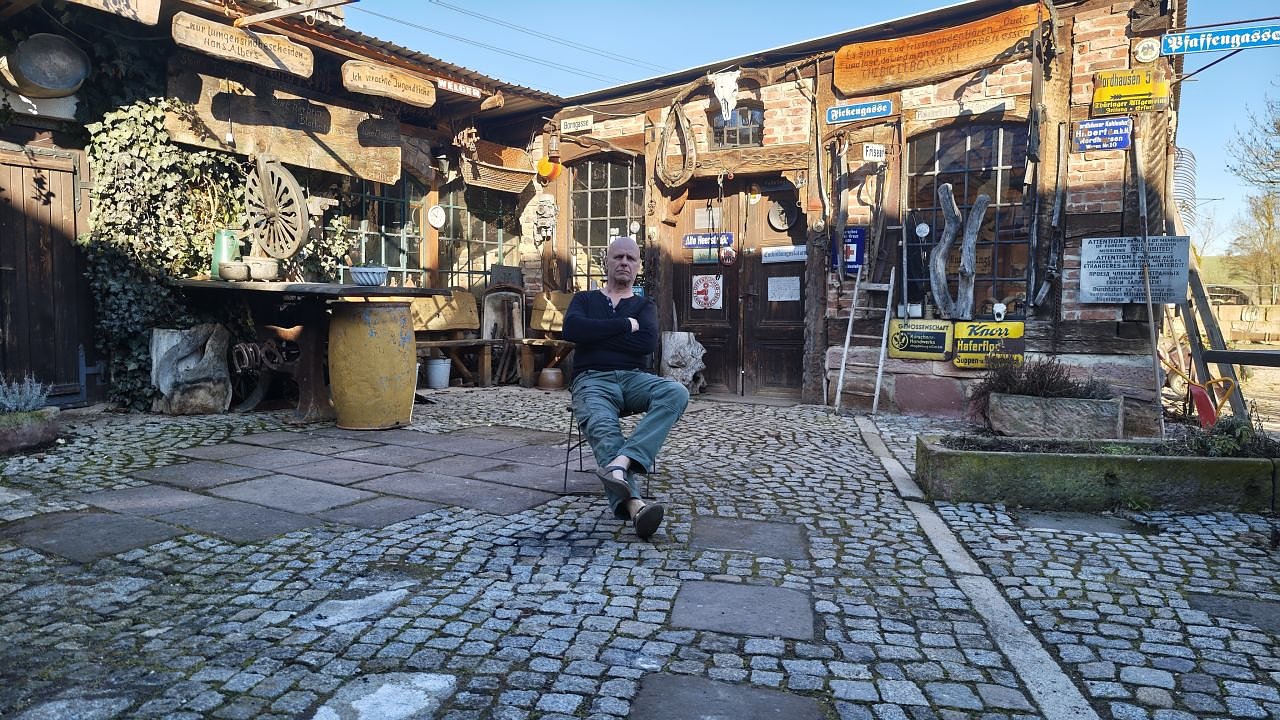 Kontakt zu Uwe aufzunehmen war und ist schwer möglich, da er digitale Kommunikationsmöglichkeiten ablehnt. Er mag sie nicht, diese Wischtelefone”. Doch dann, es war Mitte Oktober 2024, telefonierten wir. Auf meine Frage, wo er denn im überschaubaren Steinbrücken anzutreffen sei, meinte er: Du kommst von der B4 rein, fährst vorbei an vielen normalen Häusern, wenn du auf ein nicht ganz so normales trifft, dann komm' einfach auf den Hof.” Es sind die ersten Begegnungen zwischen Menschen, die manchmal die Zukunft des Miteinanders bestimmen. Man spürt es, ob es stimmt oder nicht!”