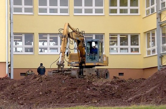 In diesen Tagen rückte nun wieder der Bagger an. So bleibt die Hoffnung, dass die Kinder demnächst auch wieder ausreichend Bewegungsfreiheit zum Spielen in den Pausen und an den Nachmittagen erhalten.