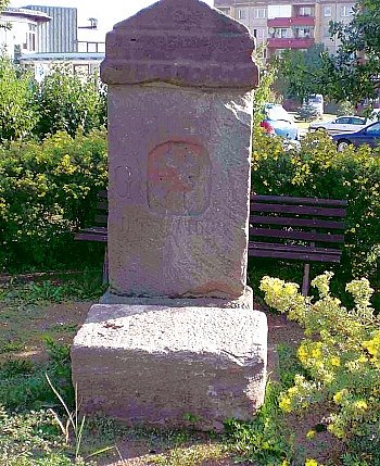 Dieser Gedenkstein (Königstuhl), der an einen angeblichen Aufenthalt des Schwedenkönigs Gustav Adolf im 30jährigen Krieg bei Artern erinnert, ist Wahrzeichen des Wohngebietes