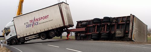 Personen wurden bei dem Umfaller des Anhängers nicht verletzt. Die Bergung gestaltete sich allerdings sehr schwierig, so daß die Bundesstraße zwischen Nordhausen und Sondershausen für fünf Stunden gesperrt werden mußte. Der Schaden wurde von der Polizei mit etwa 80.000 Euro angegeben.