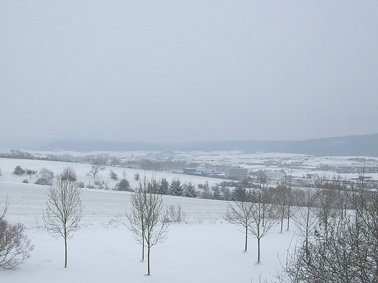 Blick vom Östertal in das verschneite Tal der Wipper Richtung Bad Frankenhausen.