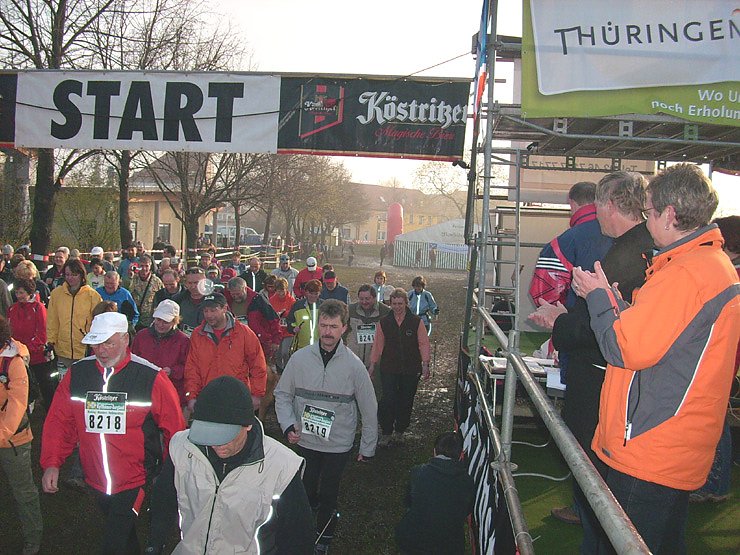 Nicht ganz so stark das Feld der Nordic Walker, die vom Präsidenten des Thüringer Leichtathletikverbandes Ralf Hafermann unter dem Beifall von Bundestagsmitglied Kersten Naumann (Die Linke) auf die Strecke geschickt wurden.