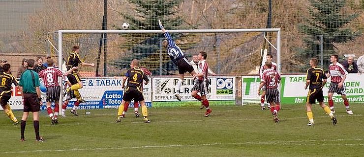 Zwölf Minuten brauchen die Gäste für den ersten Angriff. Ein guter Spielzug, von Steven Eber und Lars Pohl als Doppelpassspiel vorgetragen, zeigt, dass auch die Abwehr der Sondershäuser zu knacken ist. Der entscheidende Paß jedoch geht ins Nirgendwo. Wacker scheint frustriert, Elles 35-Meter-Schuß geht 20 Meter übers Tor. In der 25. Minute ist es Lars Pohl, der mit einem angedeuteten Seitfallzieher für ein wenig Gefahr sorgt. Torhüter Lars Greschke hält die Kugel sicher vor der Torlinie.