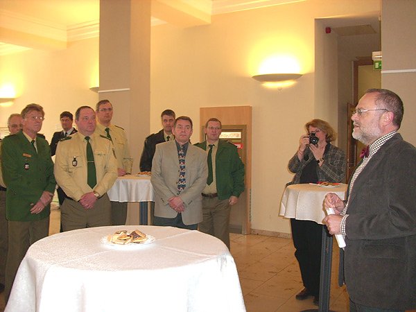 Zur feierlichen Eröffnung der neuen Rettungsleitstelle im Landratsamt waren besonders Vertreter der Feuerwehr und Rettungskräfte aus allen Teilen des Kyffhäuserkreises gekommen, um die neue Rettungsleitstelle von innen zu inspizieren, denn oft bekommt man so eine Gelegenheit nicht geboten. Die Leiter der Polizeidienststellen Nordthüringens, der Leiter der Polizeidirektion Nordhausen und Verantwortliche des Führungsstabes, die sich heute zur turnusmäßigen Arbeitsberatung in der Polizeiinspektion Kyffhäuser trafen, nutzen ebenfalls die Gelegenheit sich vor Ort über die Leistungsfähigkeit der Anlage zu informieren, wie uns der Leiter der Polizeiinspektion Kyffhäuser, Klaus Schulz, verriet. von der Landrat Peter Hengstermann, Bei so viel Interesse beließ es Landrat Peter Hengstermann bei einigen Informationen zur Anlage (152.000 Euro Kosten, beteiligt u.a. das Planungsbüro Apel und die Firma ETF Eisleben) und gab die neuhergerichteten Räume zur Besichtigung frei.