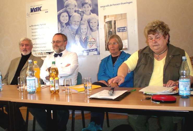 Dr. Claus-Dieter Junker, stv. Vorsitzender des VdK-Landesverbandes Hessen-Thüringen kam in den abschließenden Worten wieder auf die Frage der Aktion zurück In welcher Gesellschaft wollen wir leben? und fügte die Frage an: Was erreichen wir als großer Sozialverband?, um dann die Forderung zu erneuern, dass die Sozial- und Behindertenverbände ihre Kräfte bündeln müssen, um die Politik zu zwingen. Der VdK führt gegenwärtig eine bundesweite Aktion gegen Armut, denn, so Junker, auch Armut wird zur Barriere und Behinderung. Übrigens weilt Dr. Junker am 6. Mai bereits wieder in unserem Kreis im Zusammenhang mit Barrierefreiheit, konkret in Bottendorf, wo er zwei Öffentliche Einrichtungen mit der VdK-Plakette des Landesverbandes Hessen-Thüringen barrierefrei erbaut auszeichnen wird.