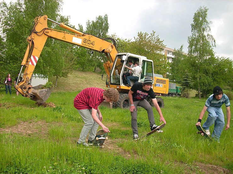 Autor: khhDer Wettergott hatte heute Mittag in Sondershausen ein Einsehen und schickte nur ein paar Spritzer für diesen wichtigen Tag in der Skaterszene Nordthüringens. Flankiert von Skatern machte der Bürgermeister mit dem Bagger den ersten Spatenstich. Nicht nur eine ganze Reihe Fans waren erschienen, sondern alles was die Stadt an Politkern, Stadträten, Verantwortlichen für Jugendarbeit usw., für die hier aufzuzählen der Platz kaum reichen würde.