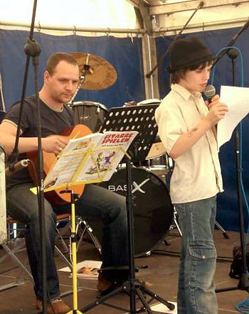 Am Sonntag hätte man sich mehr Besucher gewünscht, wobei aber auch hier bestimmte Veranstaltungen, wie die gemeinsame Aktion der Vereine Artern bewegt sich am Sonntagvormittag oder die Gitarrengruppe Zunkel am Nachmittag ihren Zuspruch hatten. Bei letzterer produzierten sich Musiklehrer Hendryk Zunkel und sein Sohnemann (unser Foto) als Ansager mit Musikschülern, die sich sehen, besser noch hören lassen konnten. Aber auch die Hundesportler hatten ihre Fans.