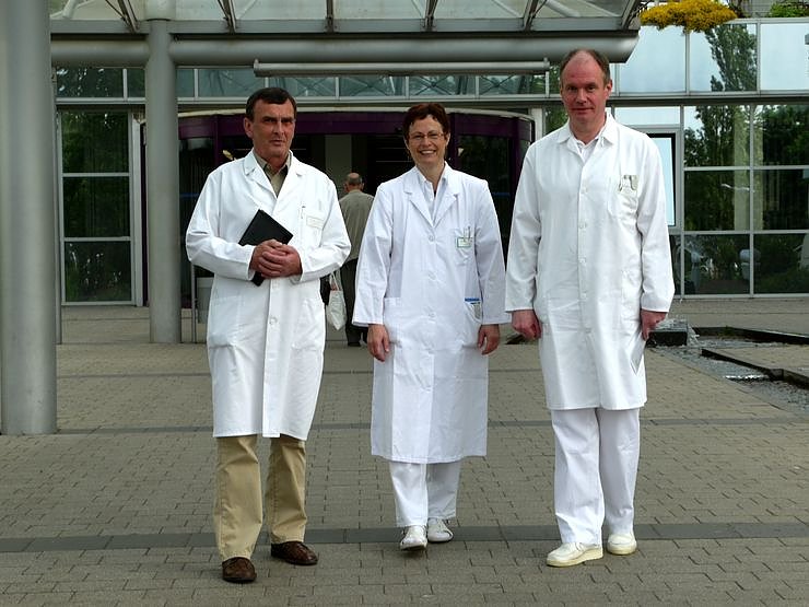 Autor: nnzDr. med. Joachim Rupprecht, Dr. med. Sabine Schnohr und Dr. med. Matthias Beintker vor dem Eingangsbereich der Klinik (v.l.n.r.)