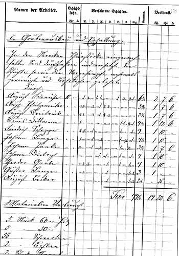 Heute beweist das Übertagegelände dies ebenfalls. Aussagen zu Belegschaft lassen sich ebenfalls aus dem Schichtbuch entnehmen. Es waren im Schnitt 25 Bergleute tätig Verwaltet wurde die Grube von Rittergutsbesitzer VON KRAUSE persönlich. Nach seinem Tode im Oktober 1873 wurde der Grubenbetrieb an den Commerzienrath Hornung in Frankenhausen verpachtet. Der Braunkohlenabbau wurde bis 1878 betrieben. Die Vorräte an Braunkohle waren erschöpft. Steiger HUTH hatte bereits im Jahre 1874 sein Amt niedergelegt. Gefördert wurden in den Jahren pro Monat 1.000 t bis maximal 2.000 t, die täglich mit Fuhrwerken abtransportiert wurden, so dass es einen lebhaften Verkehr im Ort gab.