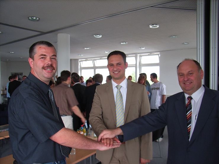 Handschlag auf gute Zusammenarbeit: Rainer Sturm, Andreas und Helmut Peter ziehen in puncto Ausbildung an einem Strang