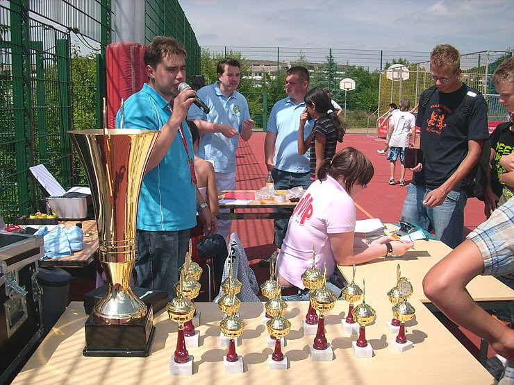 So bot das Haus der Jugend durch alternative Spielgeräte den Jüngeren die Möglichkeit sich sportlich zu betätigen und ihre Geschicklichkeit unter Beweis zu stellen. Der Kreisjugendring bot den Kindern an, sich durch Schminken in neue Figuren zu verwandeln. Jedoch nutzten dies nicht nur Kinder. Auch Erwachsene ließen sich zahlreich die schwarz-rot-goldene Fahne auf den Körper malen. Wer sich in den Spielpausen vom Fußball nicht trennen wollte konnte sich buchstäblich anschnallen lassen und im Human-Table-Kicker sich als lebender Tischkicker beweisen. Dank des Landessportbundes Thüringen konnte noch eine große Hüpfburg aufgebaut werden. Vor Beginn des Turniers verloste Henning Most mit einem Vertreter der Sparkasse schon einmal die von der Kyffhäusersparkasse gesponserten zehn Trikotssets. Da es nicht selbstverständlich ist heutzutage noch etwas ohne Gegenleistung zu Erhalten, möchte sich die Cliquenunion 96 bei der Kyffhäusersparkasse dafür auch rechtherzlich bedanken.