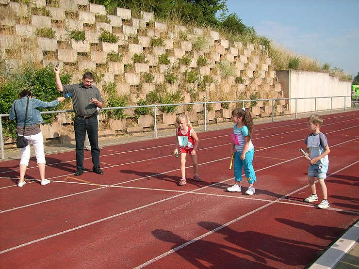 Autor: khhSondershausen Bürgermeister Joachim Kreyer (CDU) ließ es sich nicht nehmen, die ersten Läufer Punkt 09:00 Uhr auf die Strecke zuschicken. Es waren die Kindergartenkinder, die eine halbe Stadionrunde zu 200 m zu laufen hatten.
