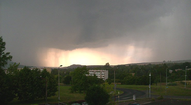 Autor: khhVerbunden ist das Gewitter mit einem enormen Temperatursturz. Waren es kurz nach 14:00 Uhr nch 32,8°C am Thermometer, so sind es jetzt gerade mal noch 19,2°C. Aber wenigsten fällt etwas Regen für die geplagten Kleingärtner, damit sie nicht ständig mit der Gießkanne rennen müssen.