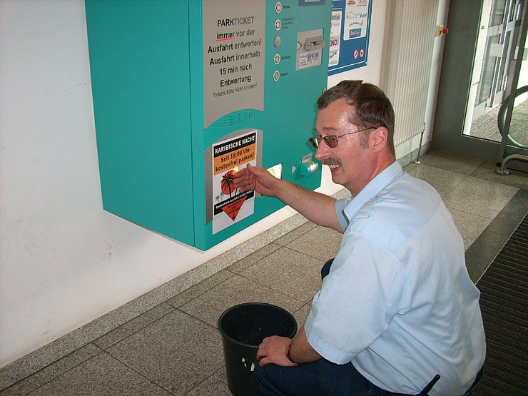 Pünktlich kurz nach 18:00 Uhr wurde der Parkscheinautomat außer Betrieb gesetzt und das Parken in der Schlossgalerie war von jetzt ab kostenlos.