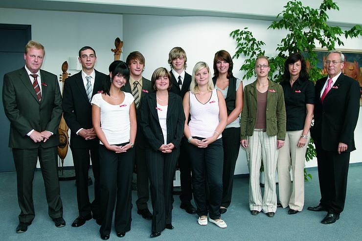 Leicht angespannt waren die neuen Auszubildenden schon, als der gesamte Vorstand der Kyffhäusersparkasse, Karl-Heinz Langhorst, Ulrich Heilmann und Hans-Joachim Warnecke, sie im Schulungsraum der Hauptstelle begrüßte. Pünktlich zum 1. August 2008 begannen Stephan Haller, Kristin Kaufmann, Franziska Kolditz, Ulrike Müller, Nico Severin, Michelle Steiner, Marc Steuerwald und Maren Tiller ihre dreijährige Ausbildung zur Bankkauffrau bzw. zum Bankkaufmann.